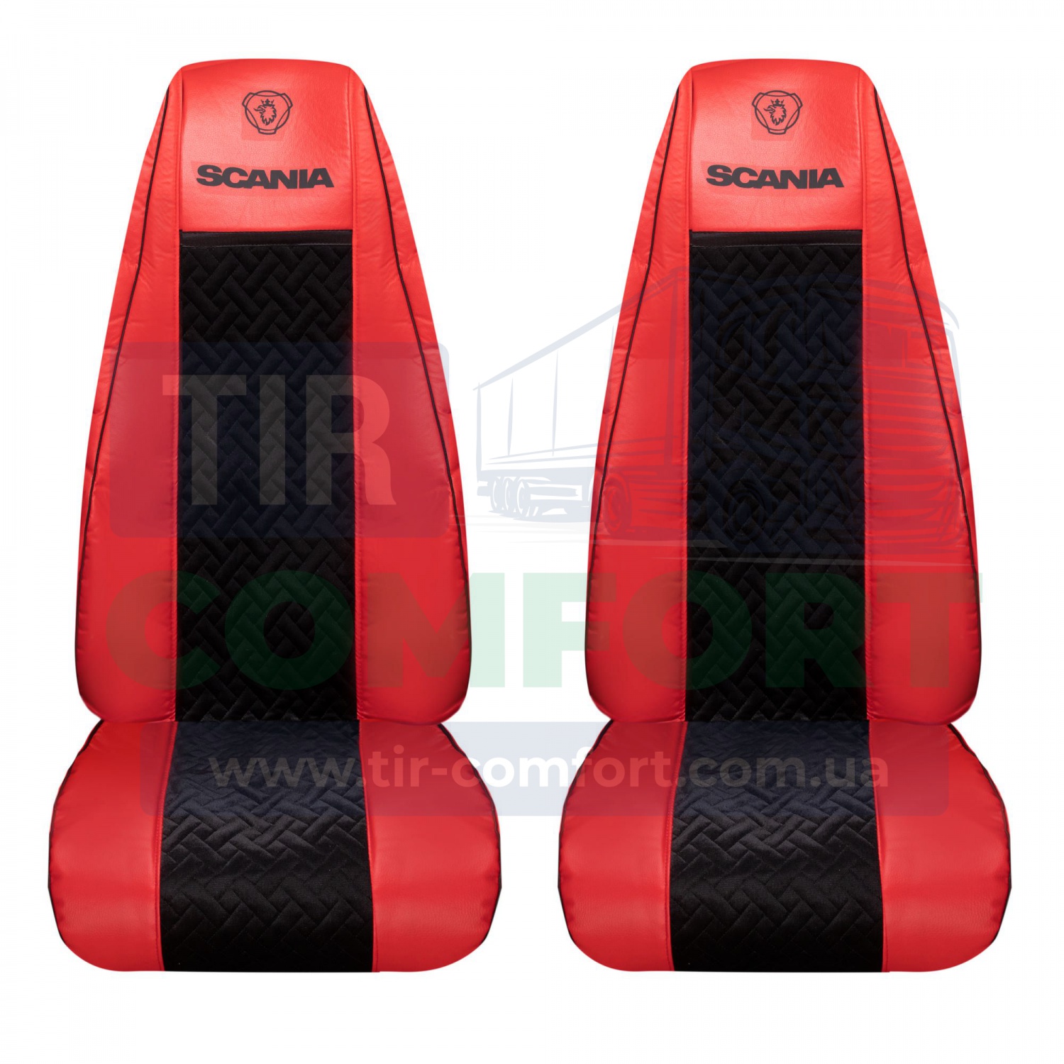 Постійно в наявності є 8 кольорів екошкіри та 8 кольорів вельвета (синій, бордовий, червоний, зелений, бежевий, коричневий, сірий, чорний), а так само чохли на всі моделі SCANIA (R, P, G)