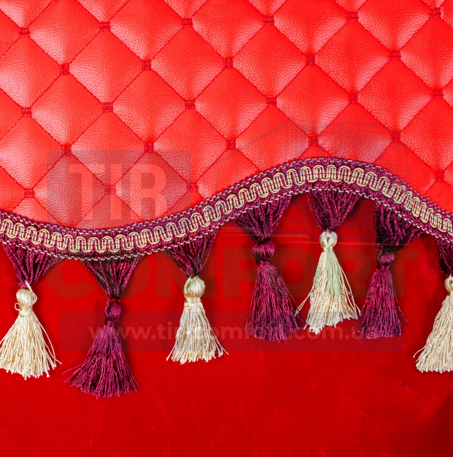 Цвет: красные шторы, желтая надпись (термонанесение), бахрома золото/бордо кисточка.