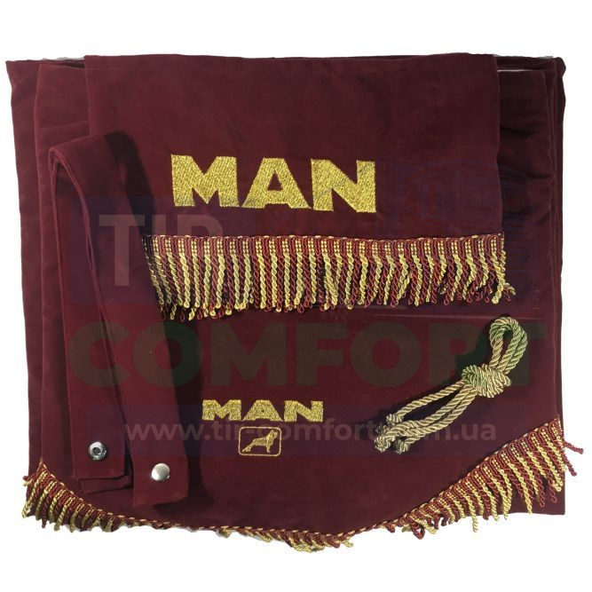 Комплект на всю кабіну з велюру (Ламбрекен лобового скла, 2 кутки, лобові штори які закривають кабіну на ніч, великий ламбрекен на спалку з 2-а шторами)
