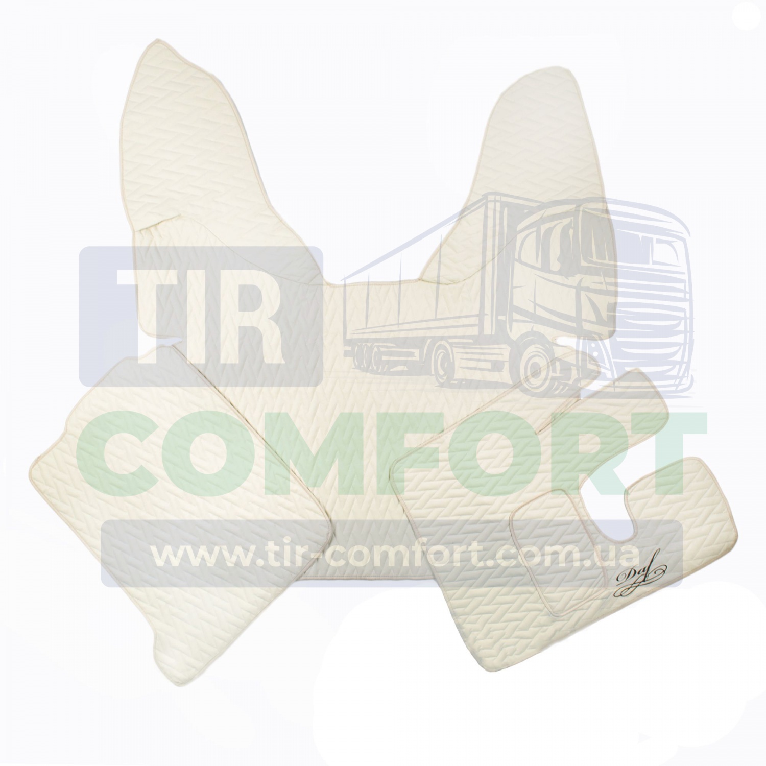 Постійно в наявності є 5 кольорів тканини (синій, бордовий, бежевий, сірий, чорний), а також килимки на всі моделі DAF (XF95, XF105, XF106, CF)